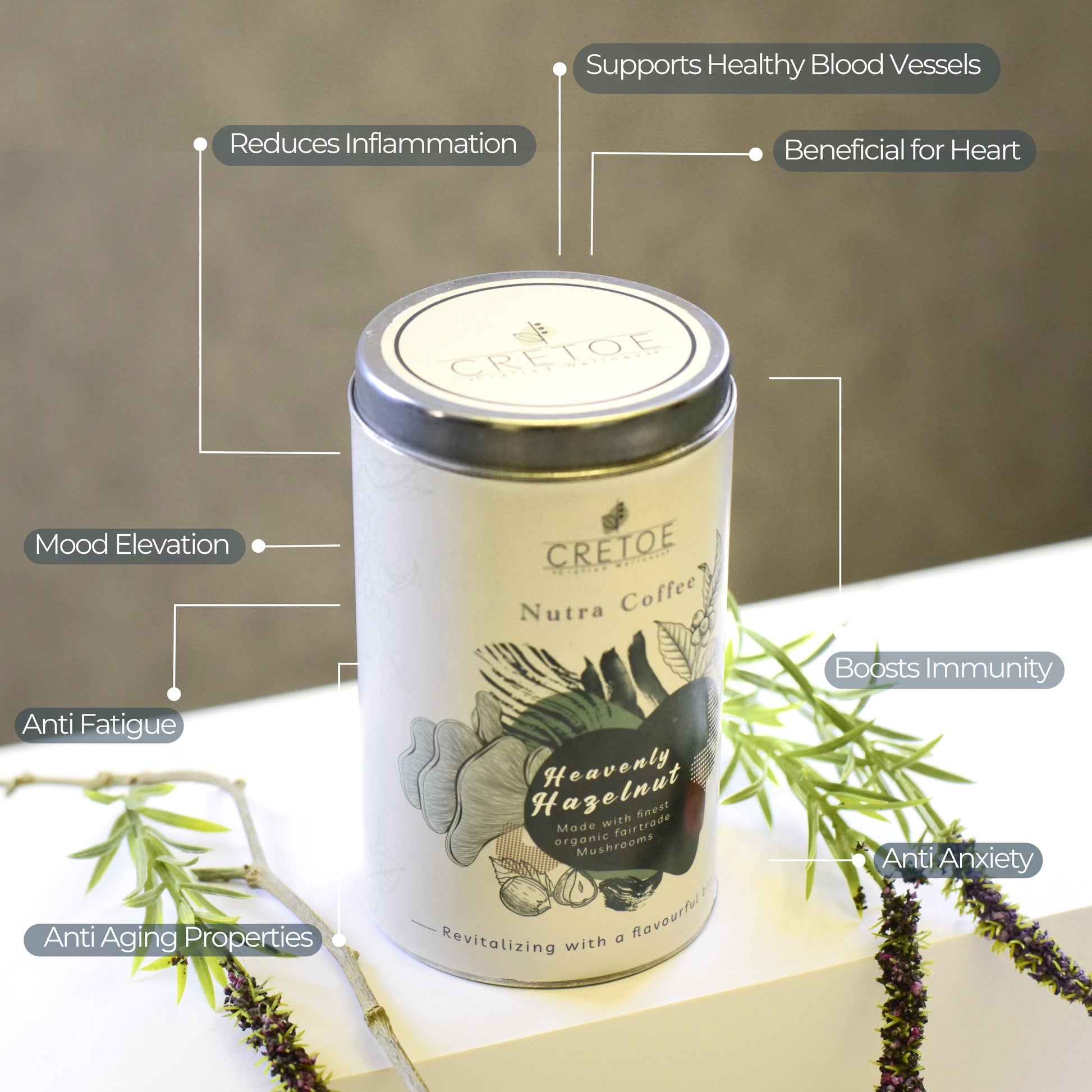 Discover the perfect balance of flavor and wellness with our Nutra Coffee. Expertly crafted from premium coffee beans, organic mushrooms, and our exclusive secret recipe, this revitalizing blend is designed to nourish your body and elevate your day with an unmatched Café quality taste that will treat your taste buds with perfection